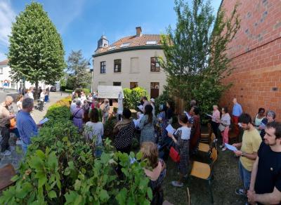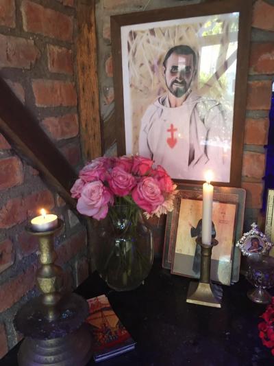 La petite chapelle dédiée à Saint Charles de Foucauld a été bâtie en 2018, dans le jardinet avant de la Maison Saint-Nicolas, par un jeune du quartier, la veille de son entrée au monastère de Tibériade. Elle a été bénie par Frère Marc le 15 mai 2022, le jour de la canonisation de celui qu’on nomme le « frère universel ». Venez y prier quand vous voulez ! Merci à nos chères voisines qui viennent chaque semaine ou chaque jour y déposer fleurs et bougies!