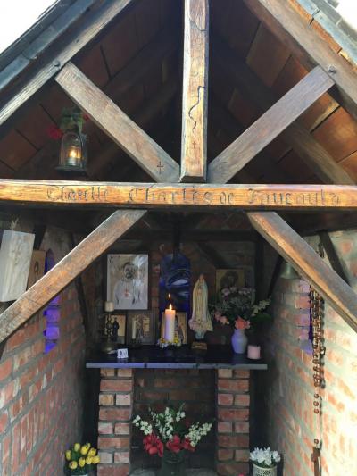La petite chapelle dédiée à Saint Charles de Foucauld a été bâtie en 2018, dans le jardinet avant de la Maison Saint-Nicolas, par un jeune du quartier, la veille de son entrée au monastère de Tibériade. Elle a été bénie par Frère Marc le 15 mai 2022, le jour de la canonisation de celui qu’on nomme le « frère universel ». Venez y prier quand vous voulez ! Merci à nos chères voisines qui viennent chaque semaine ou chaque jour y déposer fleurs et bougies!